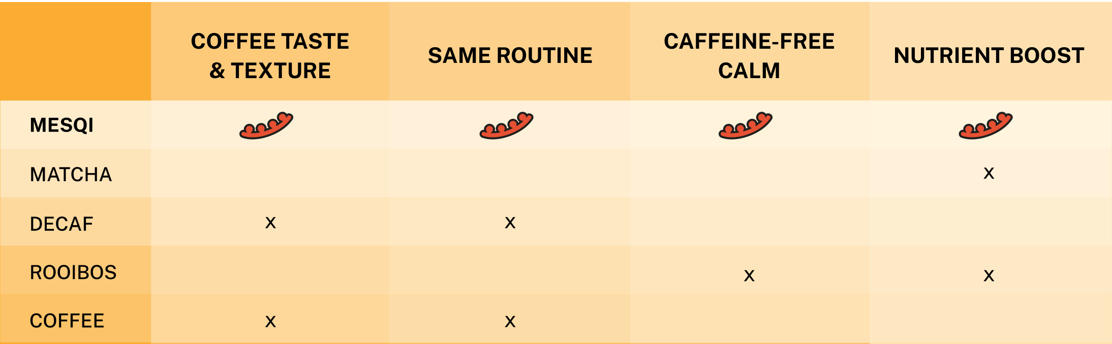 Not all coffee alternatives are created equal. Mesqi is the only NotCoffee™ that gives you the ritual, the roast, and the calm.